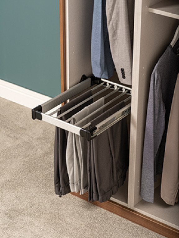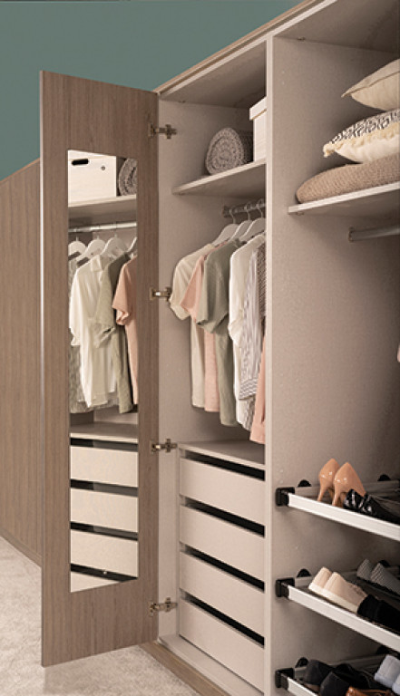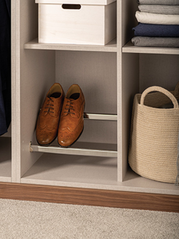 Our new internal fitments and accessories offer you the choice to create the perfect storage environment, for example, your shoes getting their own racks, your trousers hung on rails, your sweaters and socks stored tidily sway in their own drawer unit.