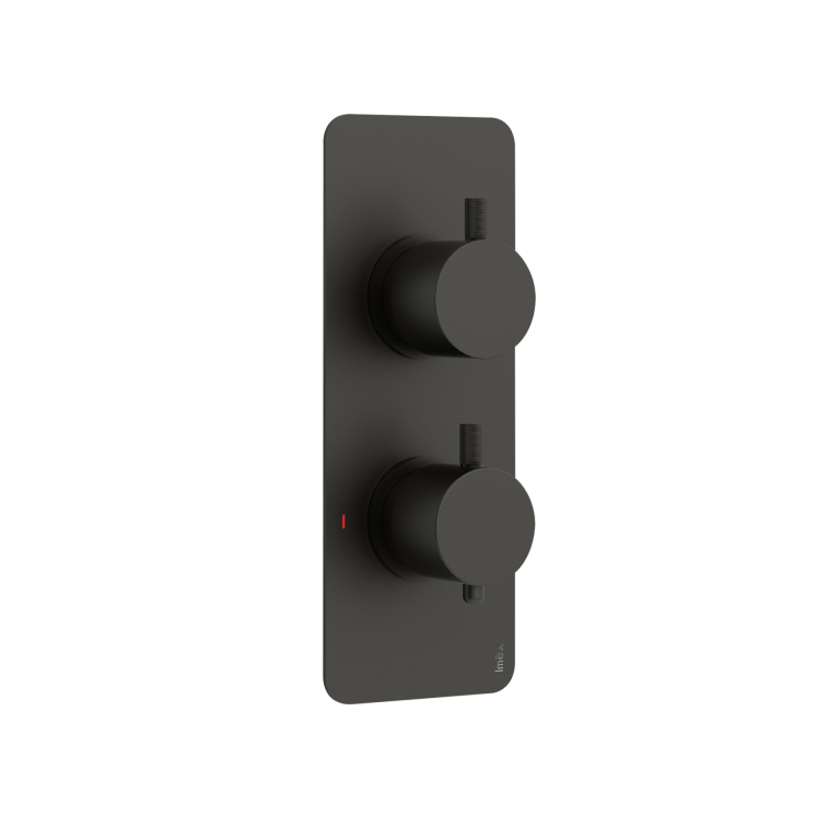 Ravine Matt Black Two Handle, Two Outlet, Concealed Thermostatic Shower