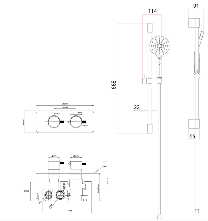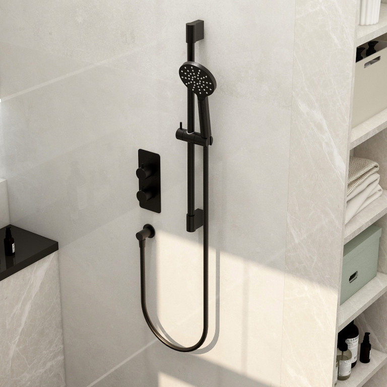 Ravine single outlet concealed thermostatic valve with adjustable multifunction handset in Matt Black