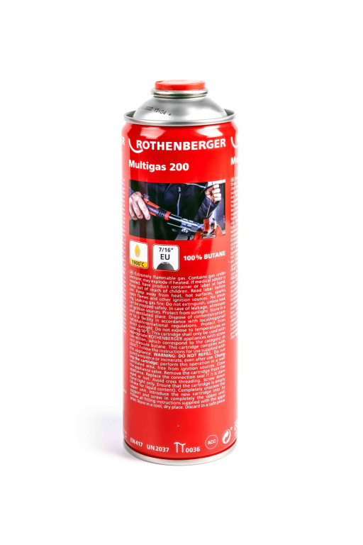Multigas Butane gas cartridges is available to suit many of the soldering and heating products on the market. The Multigas gas has a flame temperature of 1,970ºC and the cartridges are supplied with the universal 7/16"European thread. Multigas®200 Butane. Suitable for soldering torches.
