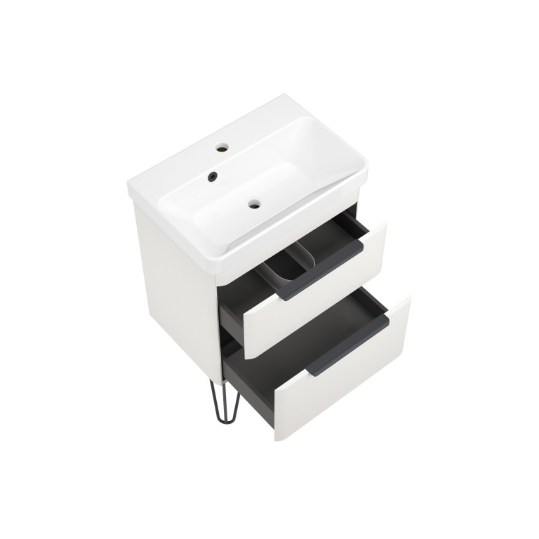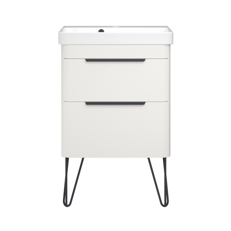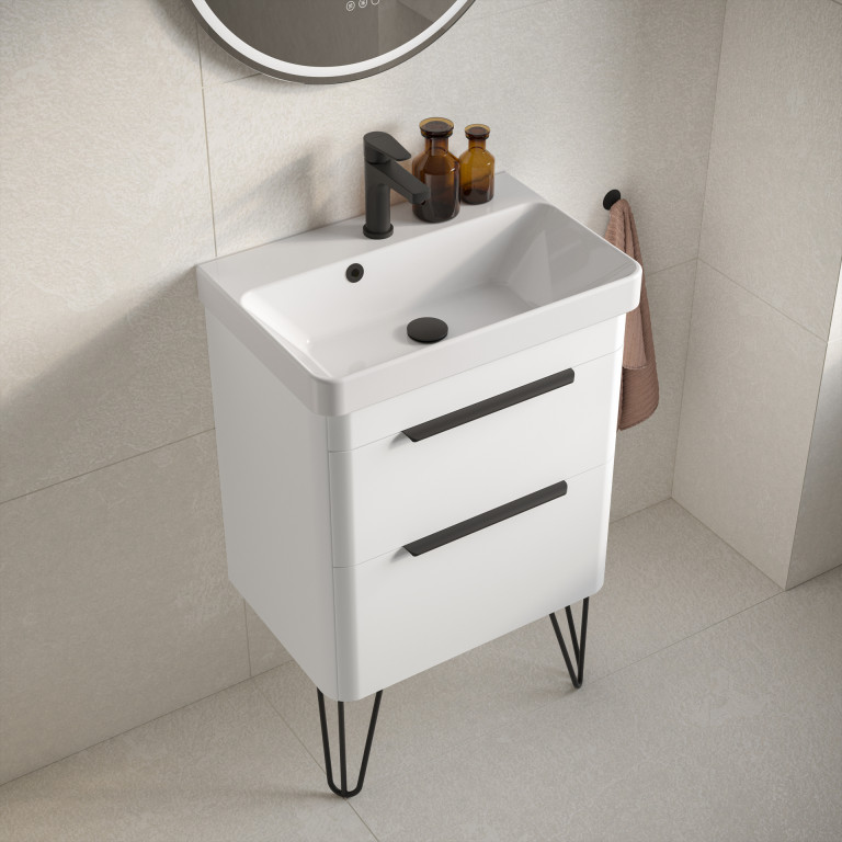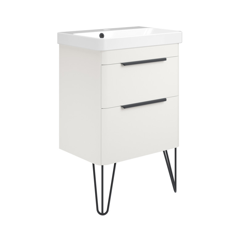Crofton 2 Drawer Vanity 550mm with Ceramic Basin, Matt Black Loop Legs and Handles -...
