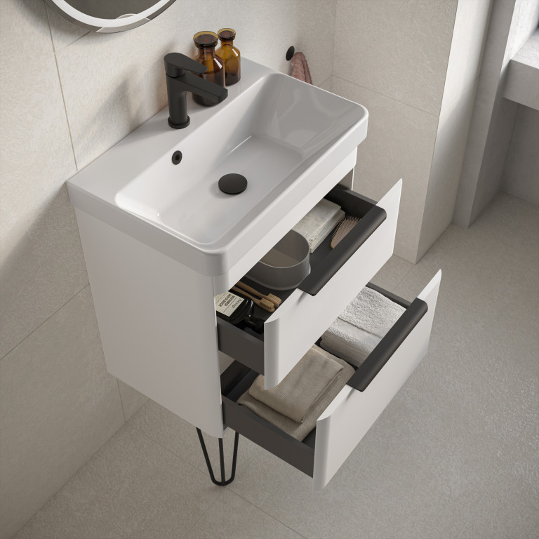 - Crofton 550mm two-drawer wall-hung vanity unit.