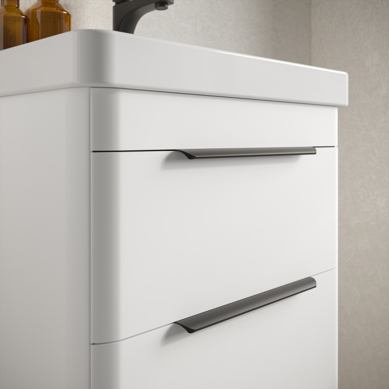 Crofton introduces a sleek and modern aesthetic with its gracefully rounded contours, a charming soft-matt finish and thoughtful features. Silent-close drawers ensure a smooth operation, while over-drawer handles contribute to Crofton’s clean and modern appearance. The ceramic basin complements the vanity's design and offers a durable and easy-to-clean solution for daily use, providing a sophisticated and functional addition to your bathroom.
