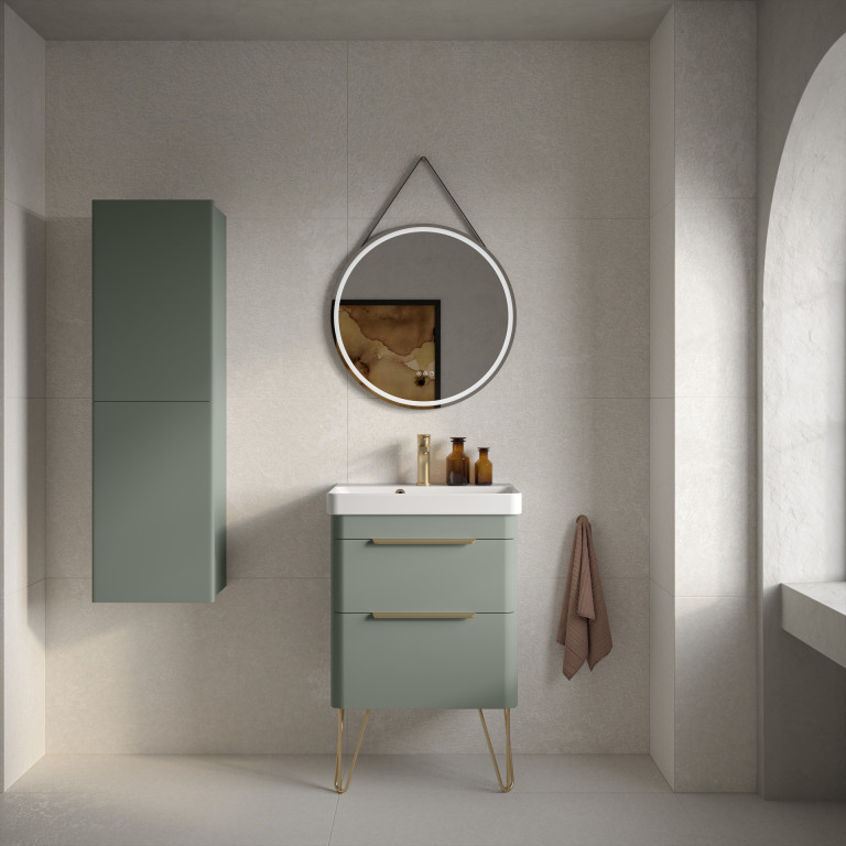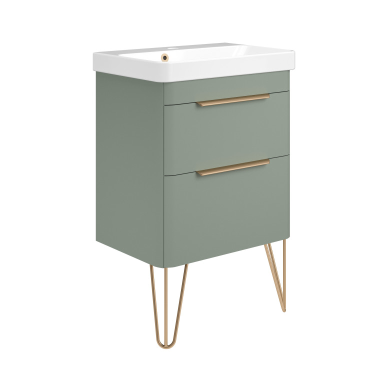 Crofton 2 Drawer Vanity 550mm with Ceramic Basin and Brushed Brass Handles - Verdant Green