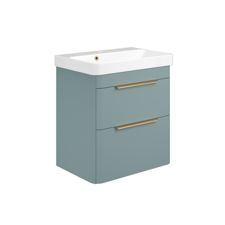 Crofton 2 Drawer Vanity 550mm with Ceramic Basin and Brushed Brass Handles - Verdant Green