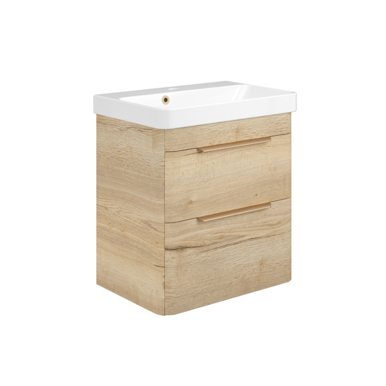 Crofton 2 Drawer Vanity 550mm with Ceramic Basin and Chrome Handles - Light Oak