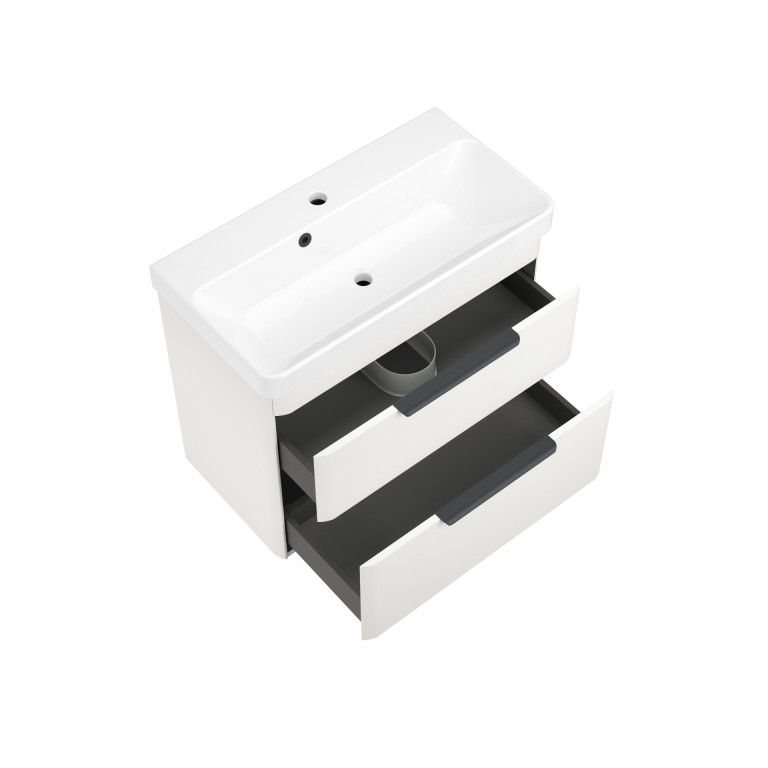 Crofton introduces a sleek and modern aesthetic with its gracefully rounded contours, a charming soft-matt finish and thoughtful features. Silent-close drawers ensure a smooth operation, while over-drawer handles contribute to Crofton’s clean and modern appearance. The ceramic basin complements the vanity's design and offers a durable and easy-to-clean solution for daily use, providing a sophisticated and functional addition to your bathroom.