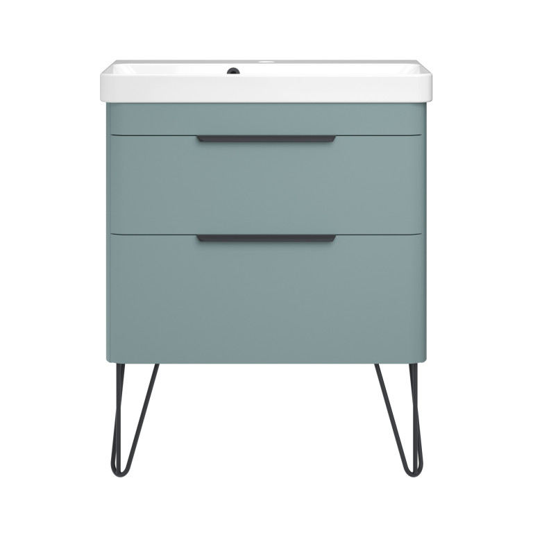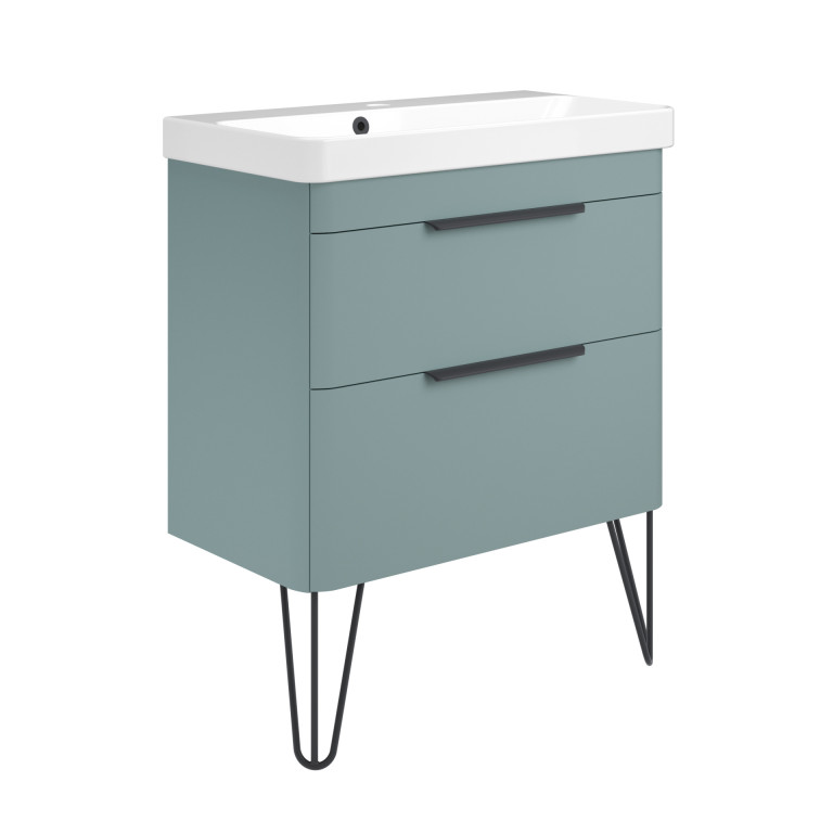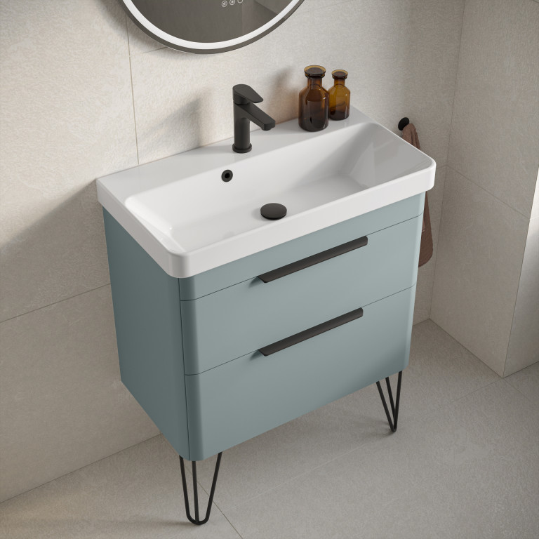 Crofton 2 Drawer Vanity 700mm with Ceramic Basin, Matt Black Loop Legs and Handles -...