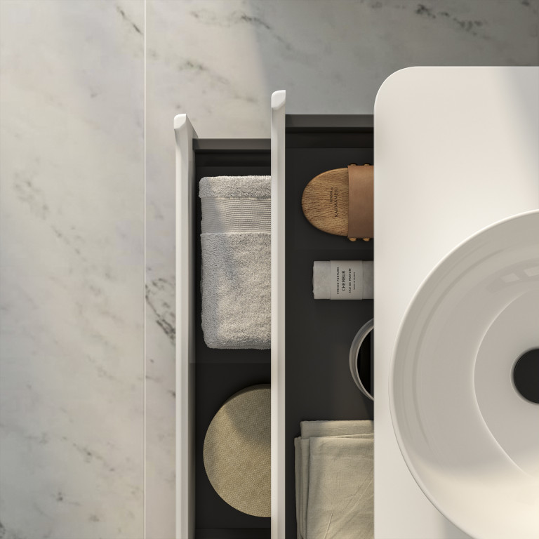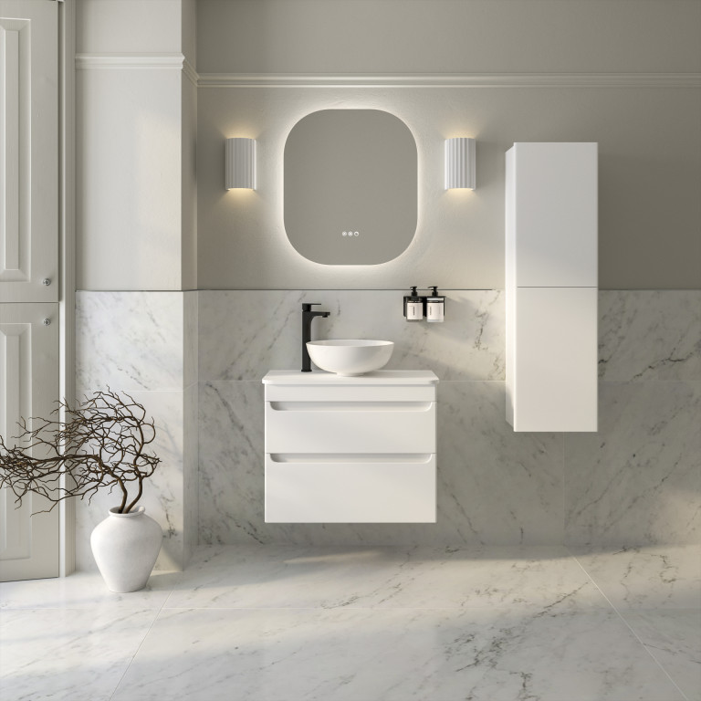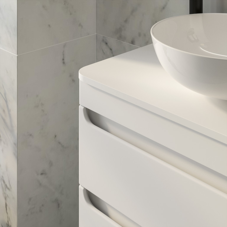Bromont brings a contemporary feel to any bathroom with its rounded corners, integrated handles and colour-matched worktop. Crafted with an emphasis on material quality, with an easy-to-clean, ceramic bowl, water-resistant matt finish and soft-close drawers. Bromont not only adds a touch of modern elegance to your bathroom but also prioritises functionality and quality.