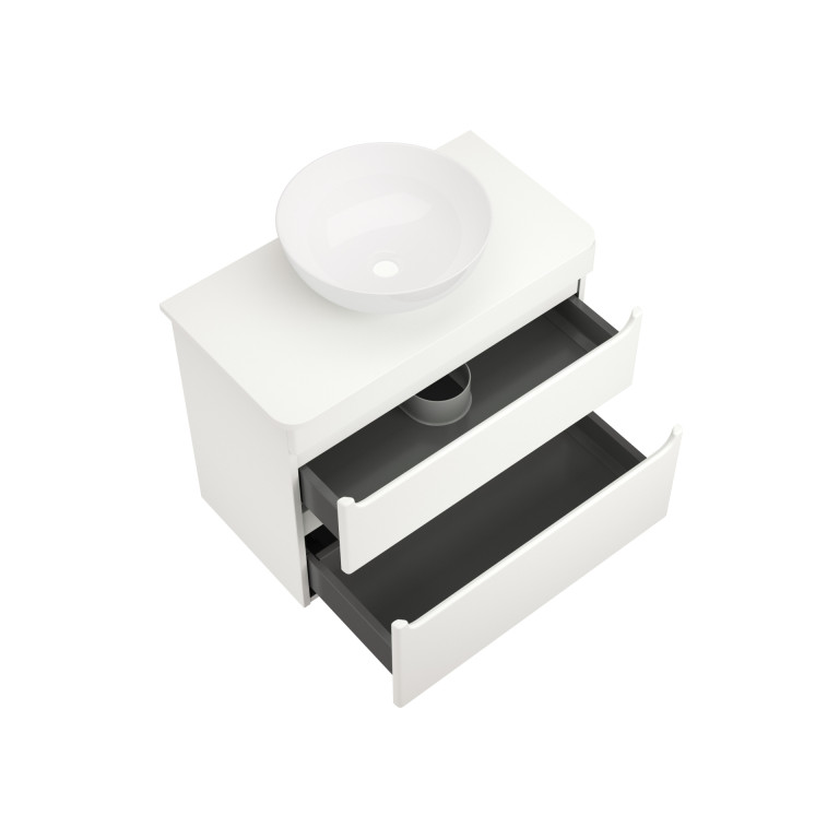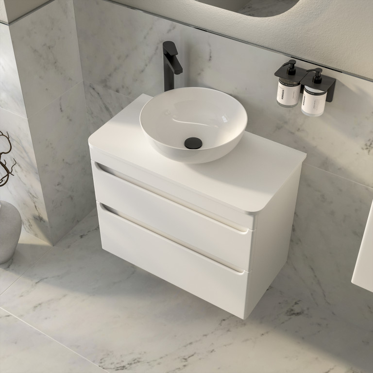 Bromont 2 Drawer Vanity 600mm with Worktop and Ceramic Sit-on Bowl - White Matt
