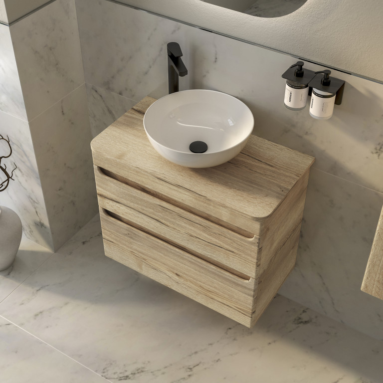 Bromont 2 Drawer Vanity 700mm with Worktop and Ceramic Sit-on Bowl - White Matt