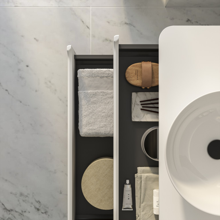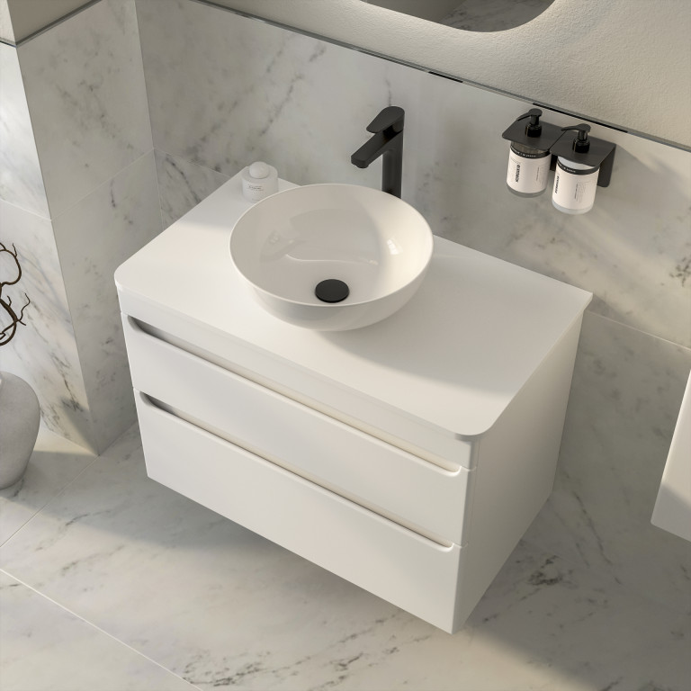 Bromont brings a contemporary feel to any bathroom with its rounded corners, integrated handles and colour-matched worktop. Crafted with an emphasis on material quality, with an easy-to-clean, ceramic bowl, water-resistant matt finish and soft-close drawers. Bromont not only adds a touch of modern elegance to your bathroom but also prioritises functionality and quality.