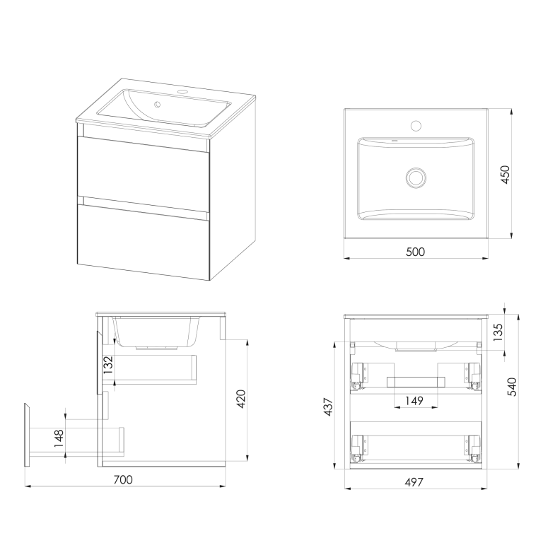 - Vernas 500mm two-drawer wall-hung vanity unit.