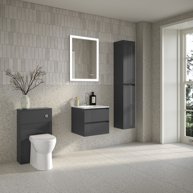 Vernas 2 Drawer Vanity 600mm with Cast Basin - Anthracite Gloss