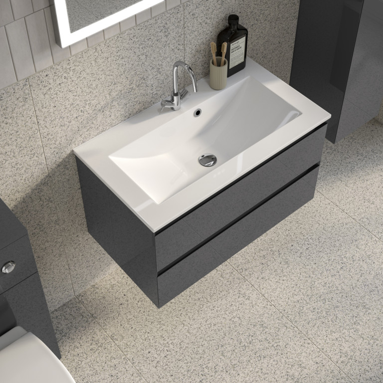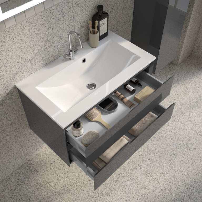 - Vernas 800mm two-drawer wall-hung vanity unit.