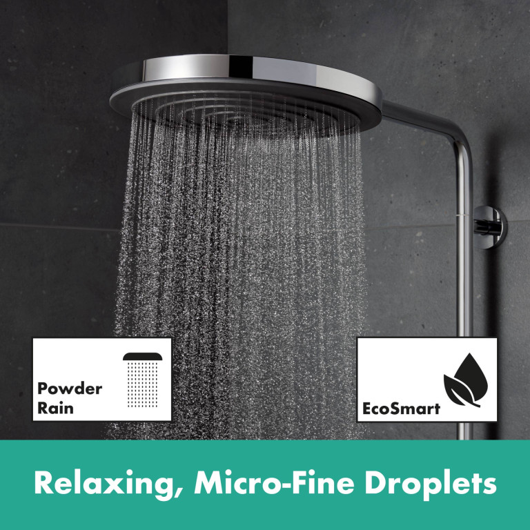 - Shower head with PowderRain: be pampered by micro-fine droplets in an immersive shower experience