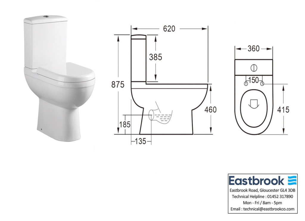 Dura Comfort Height Back To Wall Close-Coupled Eco Vortex Pan only - White (Cistern &...