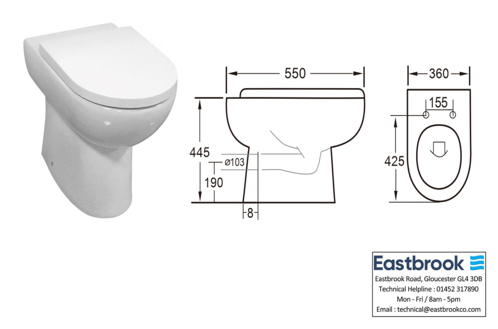 Dura Comfort Height Back To Wall Close-Coupled Eco Vortex Pan only - White (Cistern &...