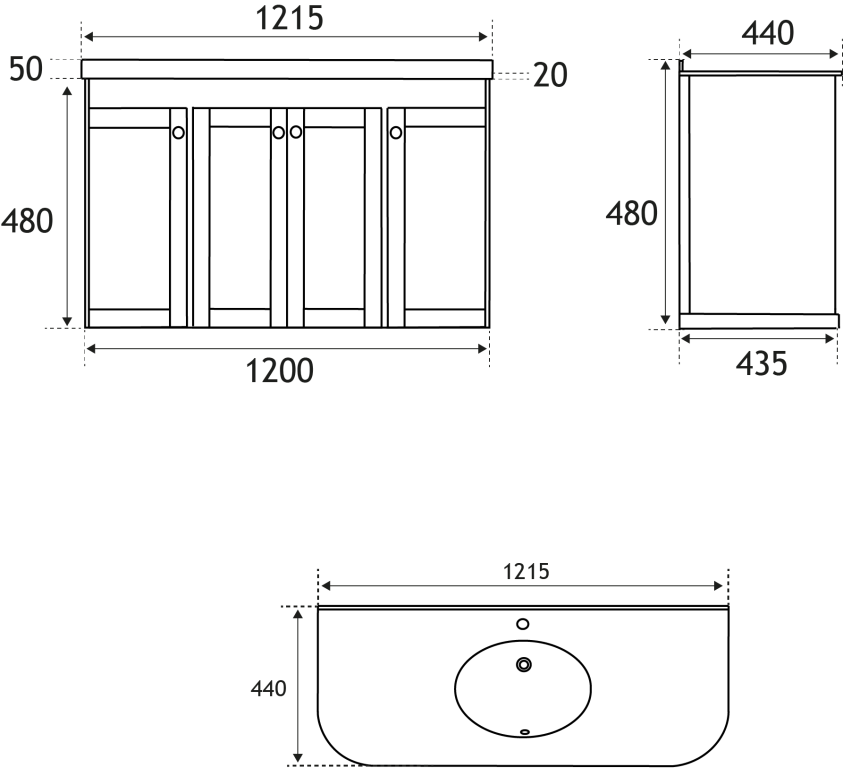 - 446mm (L) x 1203mm (W) x 480mm (H)