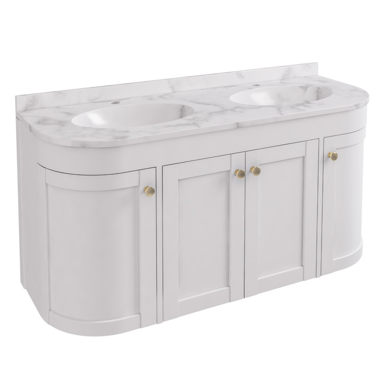 The Hardwick bathroom furniture with the traditionally inspired curved lines and door panels of the vanity unit.