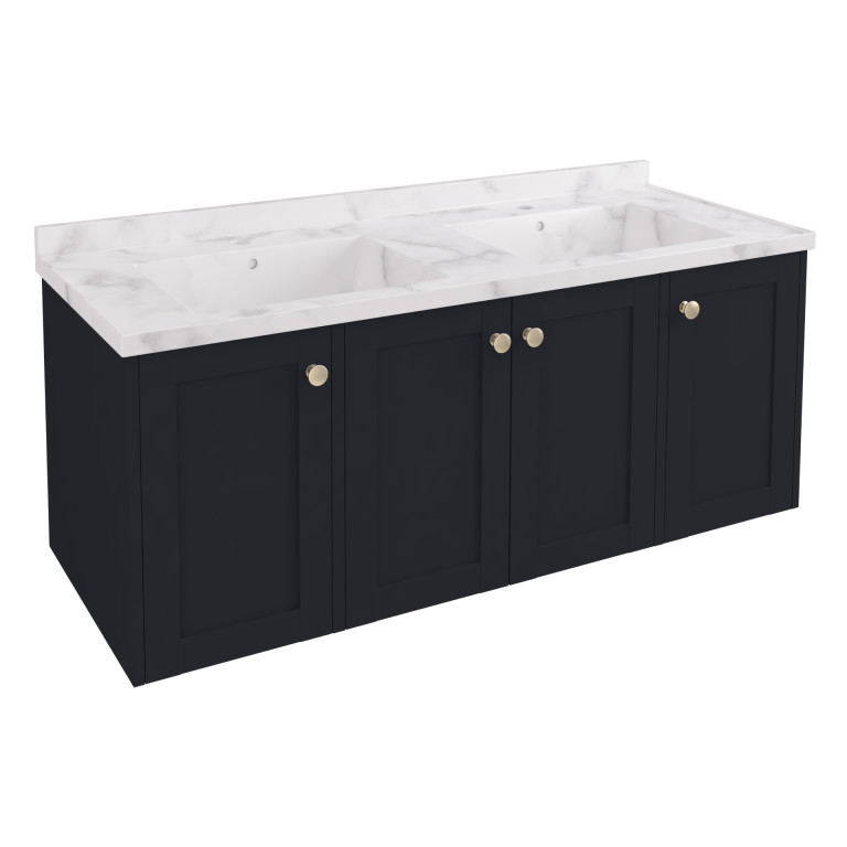 Hardwick Straight 1200mm Double Bowl wall hung vanity Unit only - Matt White (Basin &...