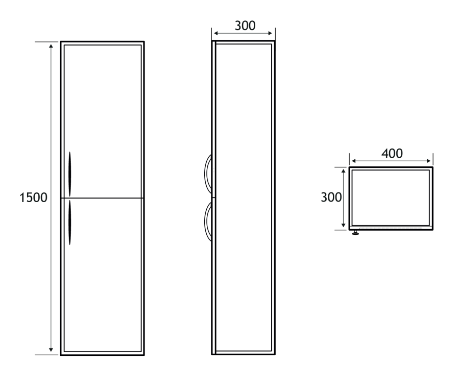 - 400mm (L) x 300mm (W) x 1500mm (H)
