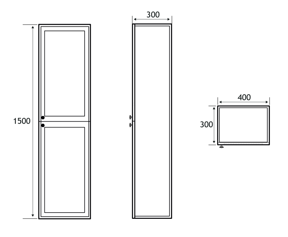 - 400mm (L) x 300mm (W) x 1500mm (H)