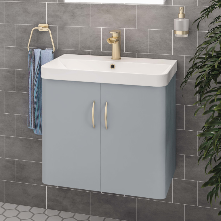 Cavone II Wall Hung Door Cabinet only 350x600 - Grey (Basin & Tap Sold Separately)