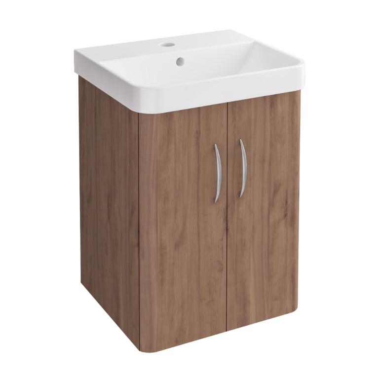 Cavone II 600 Wall Hung Door Unit only - Medium Oak (Basin & Tap Sold Separately)