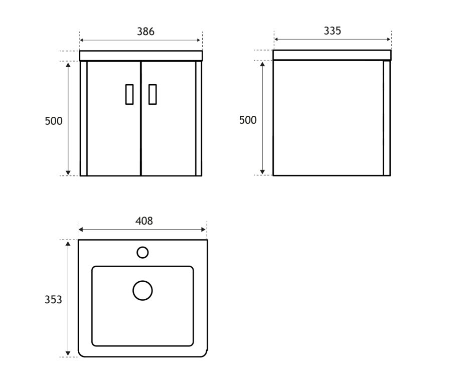 - 335mm (L) x 386mm (W) x 500mm (H)
