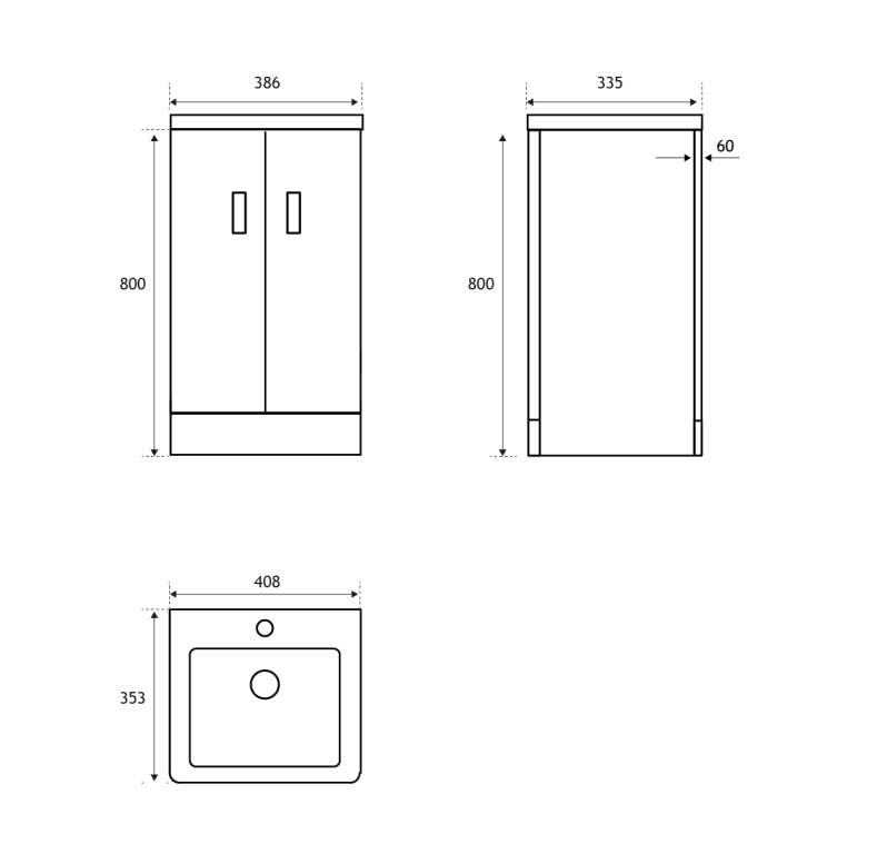 - 335mm (L) x 386mm (W) x 800mm (H)
