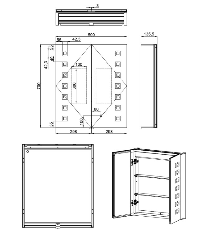 Chiana LED Mirror Cabinet 600 x 700mm - 2 Door