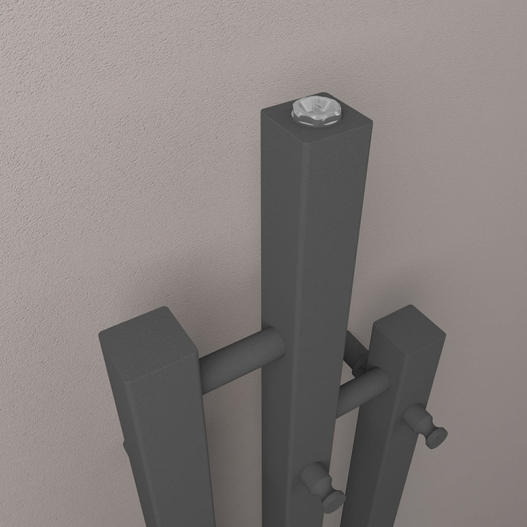 Download (0.46 MB)A masterpiece for your bathroom or any other room. The square vertical bars at the top can be used as towel / bathrobe hangers and the 3 x robe hooks can be used to dry your towels too. This exceptional design is available in 4 colour options.