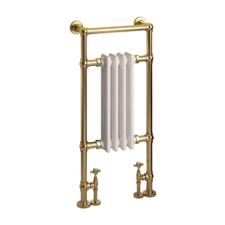 Avon 960 x 500 Towel rail - Brushed Brass/Gloss White