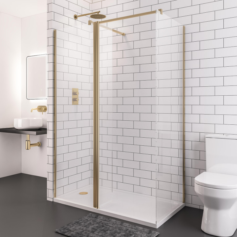Vantage 2000 8mm Walkin 300x2000 Shower Panel - Brushed Brass