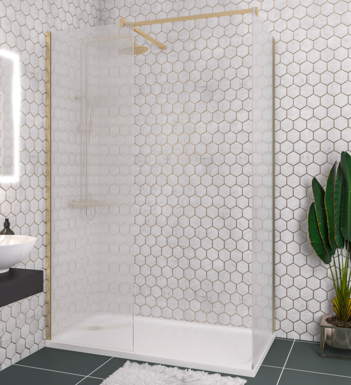 Vantage 2000 8mm fluted glass walkin Shower panel 1300 x 2000 Brushed Brass - Brushed...