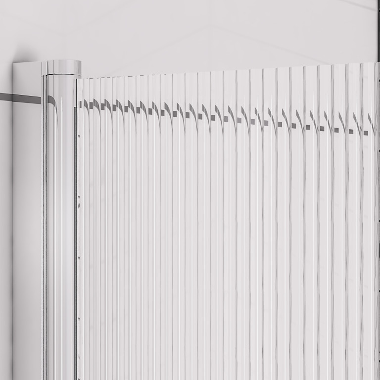 6mm Straight bath screen in fluted glass Right Handed - Chrome