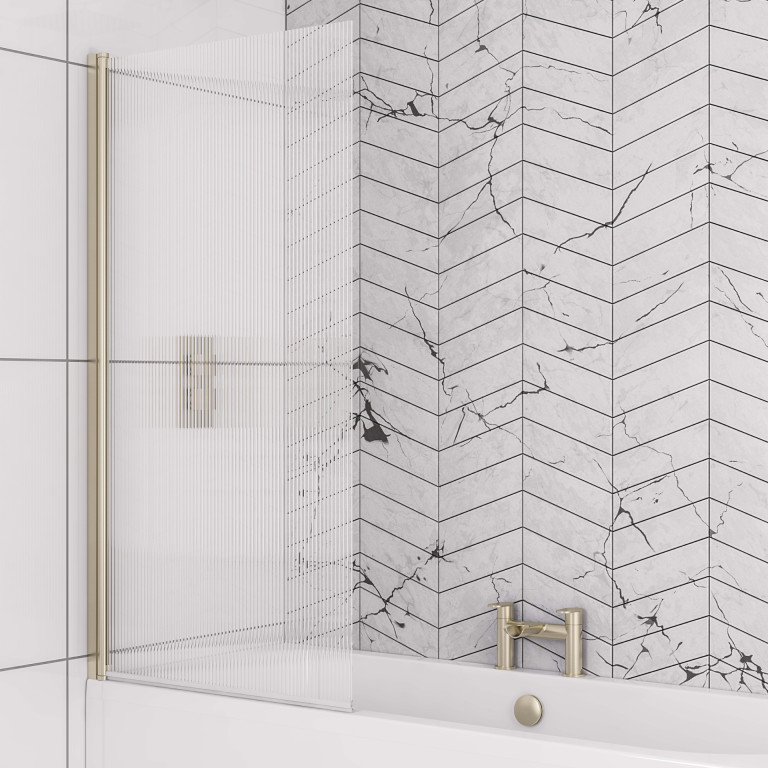 6mm Straight bath screen in fluted glass Right Handed - Brushed Brass