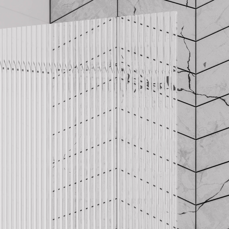 Vantage 2000 8mm fluted glass walkin Shower panel 800 x 2000 - Chrome