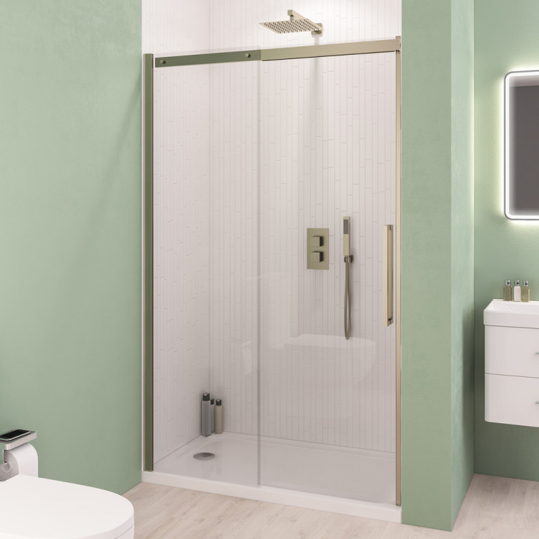 • Shower Enclosures Shower Doors Sliding Doors Corniche 2000x1600 8mm Semi-Frameless Sliding Shower Door - Brushed Brass