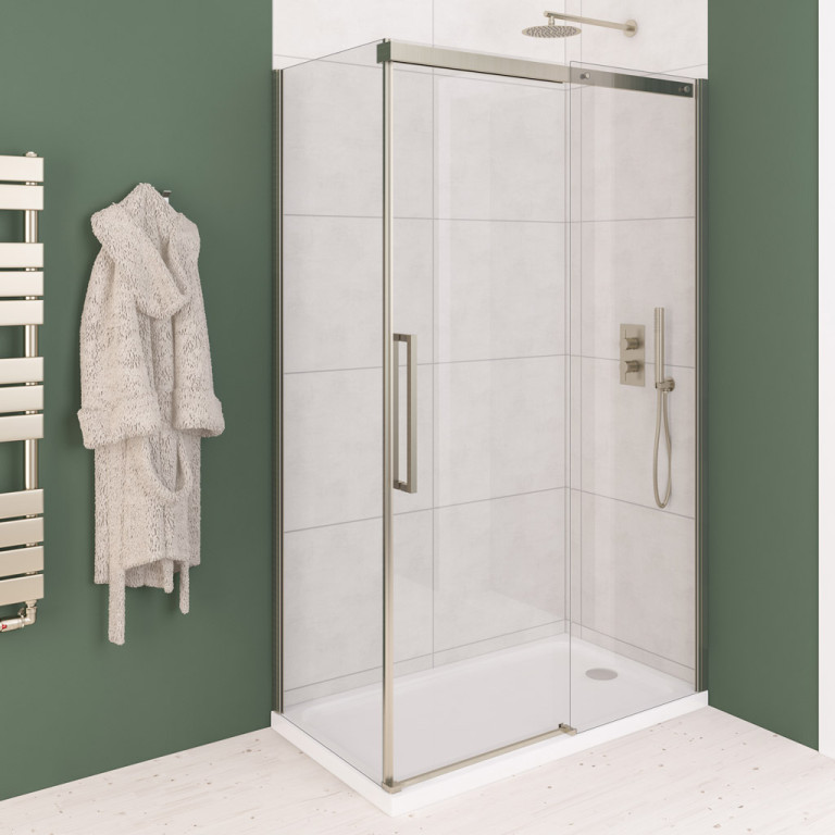 Corniche 2000x1600 8mm Semi-Frameless Sliding Shower Door - Brushed Brass