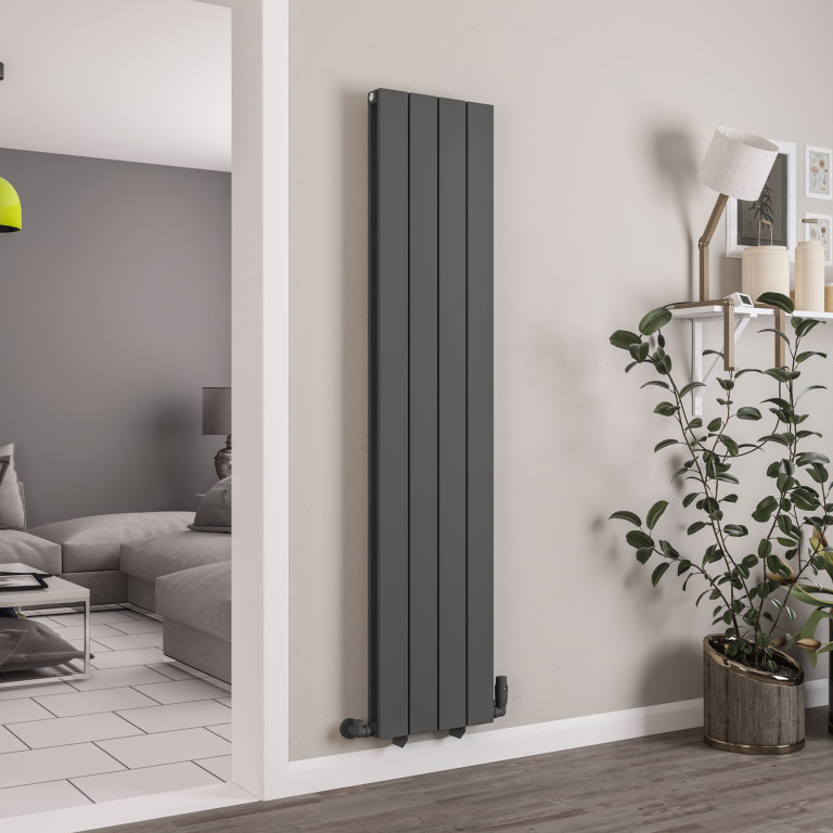 Queenswood 1800 x 485 Aluminium Radiator - Matt Anthracite