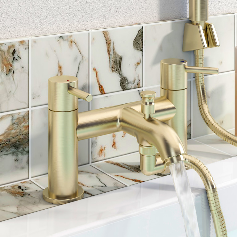 Meriden Bath filler with a curved spout - Brushed Brass