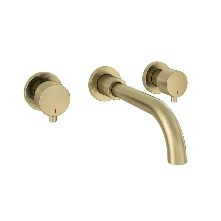 Meriden Three Hole Wall mounted Basin Tap set - Brushed Brass