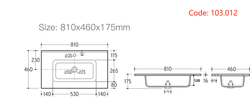 - 460mm (L) x 810mm (W) x 175mm (H)