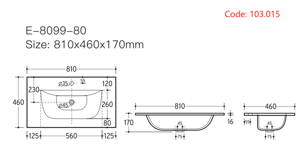 Universal 600 Basin only 1 Tap Hole - White (Vanity unit & Tap Sold Separately)