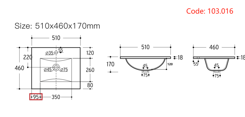 Universal 800 Basin only 1 Tap Hole - White (Vanity unit & Tap Sold Separately)