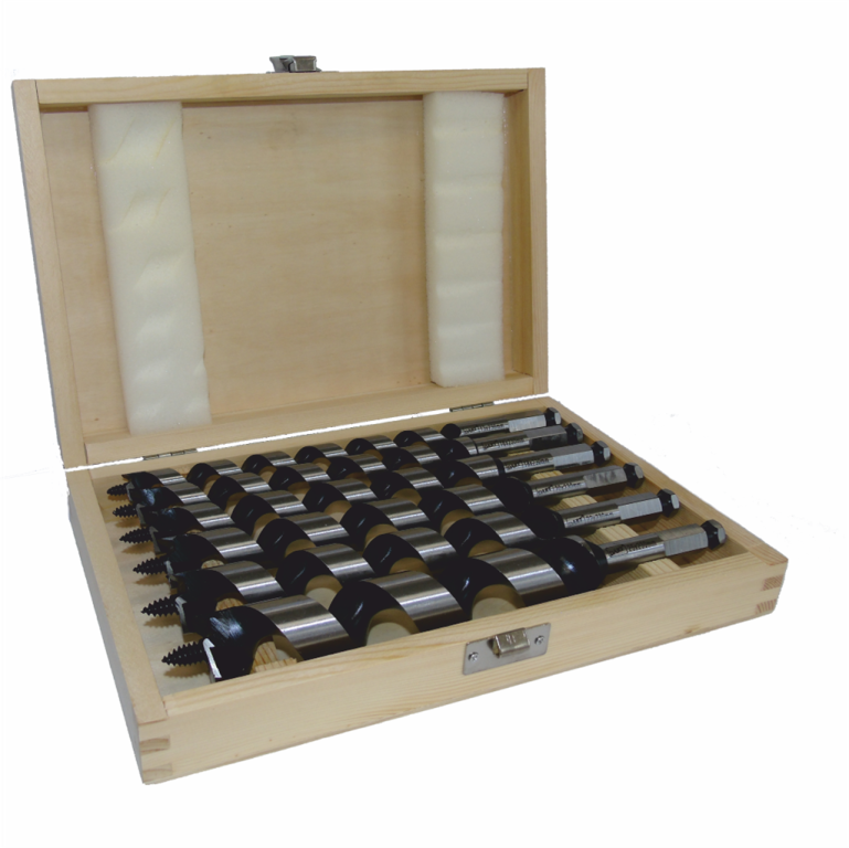 Download (0.17 MB)Precision ground bit for fast clean drilling in all types of wood. Threaded tip for self centring self feeding. Smooth flute geometry enables fast drilling and fast chip removal without jamming. One main spur and one pre-cutting spur for accuracy. Suitable for drilling construction timber, hard and soft wood, laminated chipboard and veneerd wood. This set contains 13, 16, 18, 20, 25 x 230mm bits.