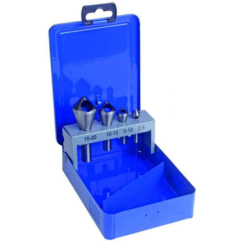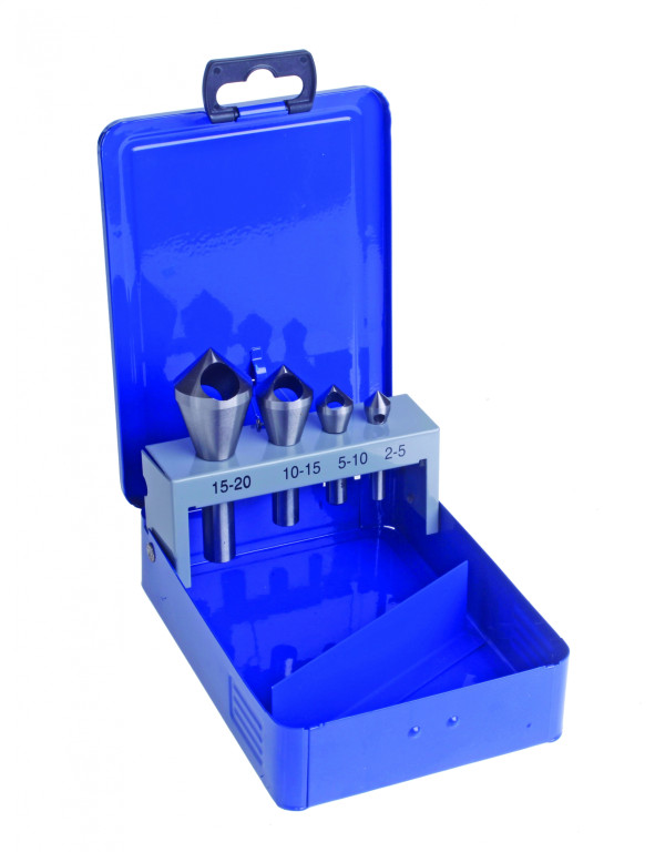 Download (0.13 MB)Precision engineered, high speed ground steel countersink bits. Manufactured to DIN335C standards. A Single 90 degree slanting hole for smooth finish. Suitable for use on metal, non-ferrous metals, aluminium, sheet metal, vaneered wood, laminated chipboard and PVC. This set contains, 2-5, 5-10, 10-15, 15-20mm Bits