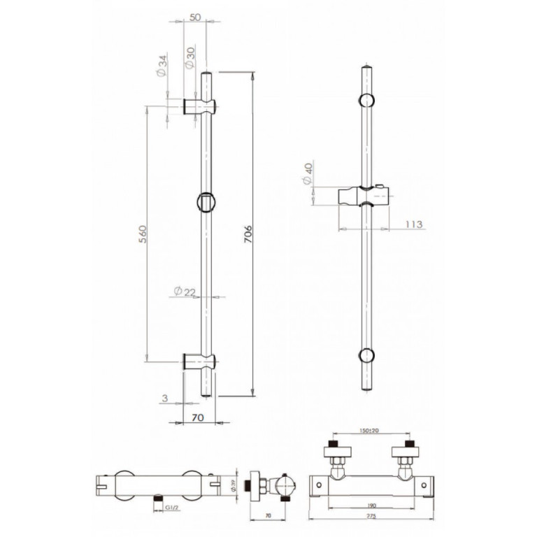 Arco Thermostatic Shower Set with Slide Rail and Air Mix Handset